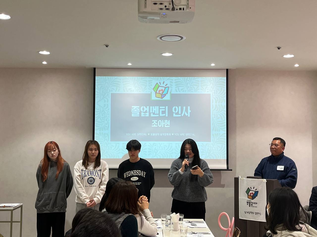 장학생들과 멘토들의 결연 서약, 장학증서 선물 전달, 졸업생 소감낭독, 졸업생 축하....
